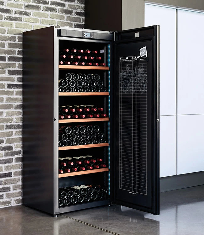 *Capacity defined as an indication of traditional 75cl Bordeaux bottles and measured with 4 shelves; the addition of shelves significantly reduces storage capacity.