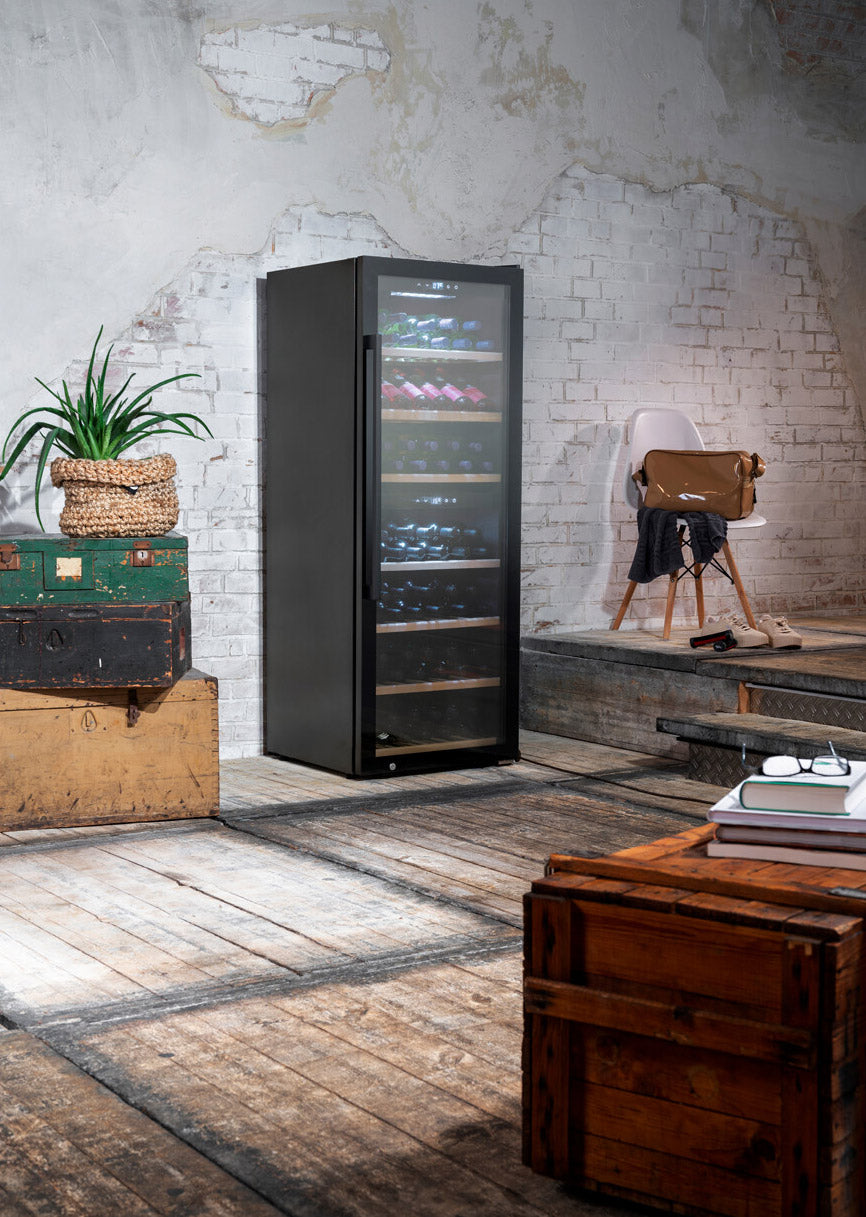 The WineExclusive 126 Smart offers dual temperature zones (5°C - 20°C), Wi-Fi control, 126 bottles and an elegant design with UV door.
