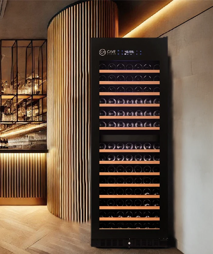 El enfriador de barra Cavevinum CV-7DN es la solución perfecta en tu bar, restaurante y paraexhibir vinos tintos en espacios reducido.Con capacidad para 5 botellas de 75 cl o 3 Magnum de 1,5 L, su sistema de refrigeración termoeléctrica mantiene una temperatura regulable entre 12°C y 18°C. Su diseño compacto y elegante, junto con su bajo consumo energético (0,5 kWh) y display digital intuitivo, la convierten en una solución práctica para bares, restaurantes o el hogar.