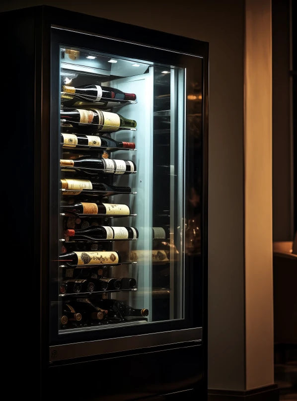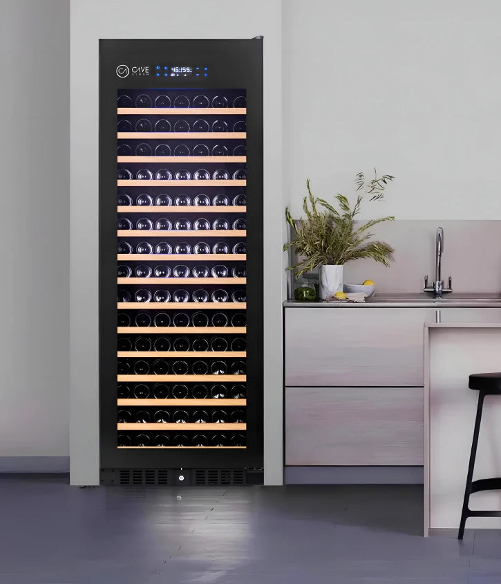 Vinoteca de barra CV-7-DN de CaveVinum, capacidad para 5 botellas (75 cl) o 3 Magnum (1,5 L), refrigeración termoeléctrica silenciosa, temperatura regulable (12°C-18°C), bajo consumo (0,5 kWh) y display digital.