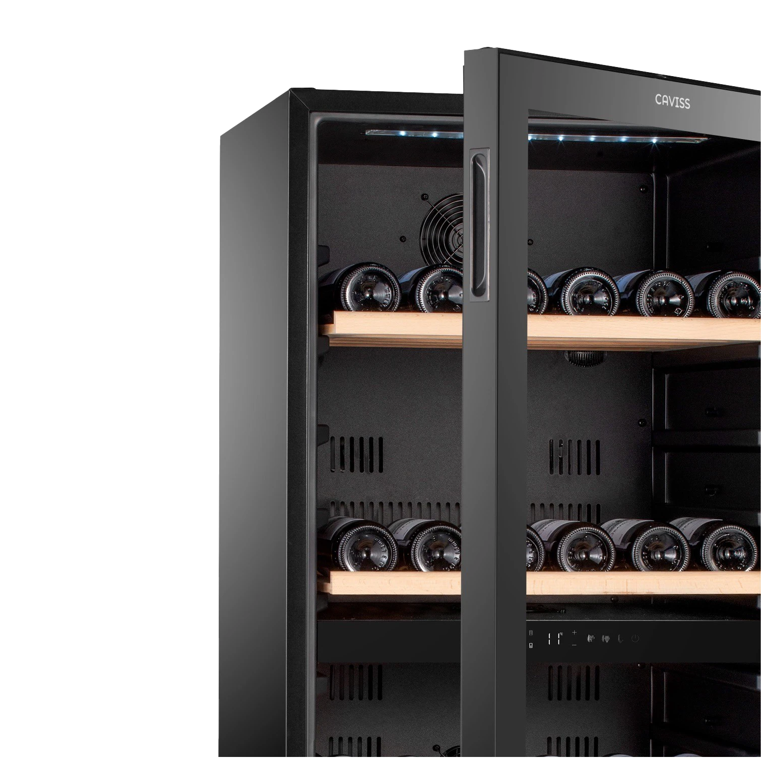 Caviss SLEN123TBE4: vinoteca encastrable en columna, capacidad 23 botellas, temperatura ajustable 5-20°C, doble cristal anti-UV, compresor antivibraciones y display digital para un almacenamiento perfecto. Diseño elegante y funcionalidad profesional.
